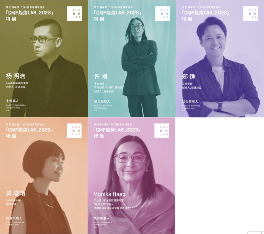 同时,新一届策展人阵容也正式亮相。由主策展人杨明洁先生领衔,携手许刚先生、黄晓靖女士。此外,团队成员首次引入具有空间设计背景的策展人郑铮先生,透过他多年来对品牌体验场景的研究与实践,探讨从空间体验角度转化材料的创新趋势。而国际趋势专家、工业设计师,国际色彩营销集团CMG亚太区董事,德硅·雷诺丽特管理部总经理 Monika Haag女士 也将以「CMF趋势LAB」首位国际策展人的身份加入,开启“色彩之旅”,以更国际化视角进一步深入CMF趋势研究。
