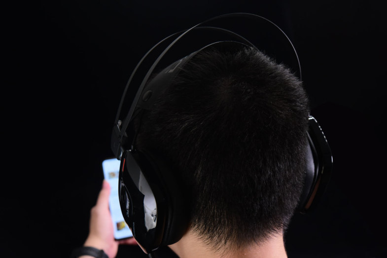 戴上去之后,首先第一点就是对眼镜党来说很友好,得益于耳罩的柔软度和巨大的内耳罩,不会强行挤压镜腿,第一感觉挺不错的。