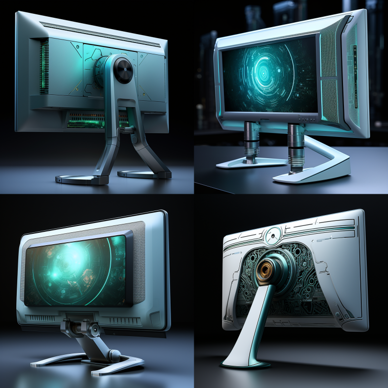 想利用AI进行前期的灵感收集阶段,一些常见的产品很容易就能得到比较满意的效果图。如耳机,手机,蓝牙音箱等等。但是对于一些冷门,或者说造型复杂的产品AI就显得有点无能为力,如显示器。