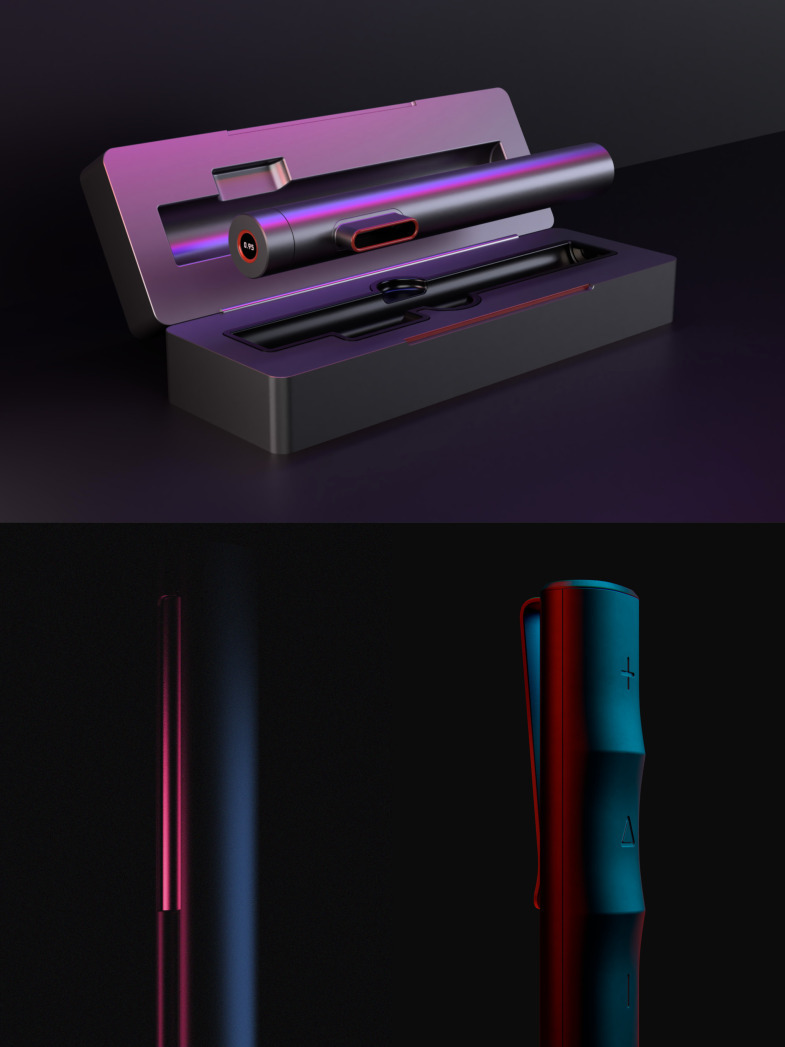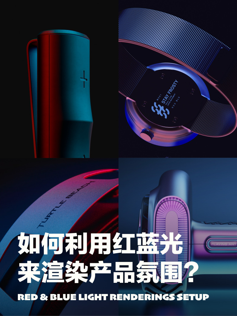 如果觉得黑白灰光影渲染产品太过单调,可以试试不同颜色的灯光组合,今天教大家用红蓝光营造氛围渲染产品。