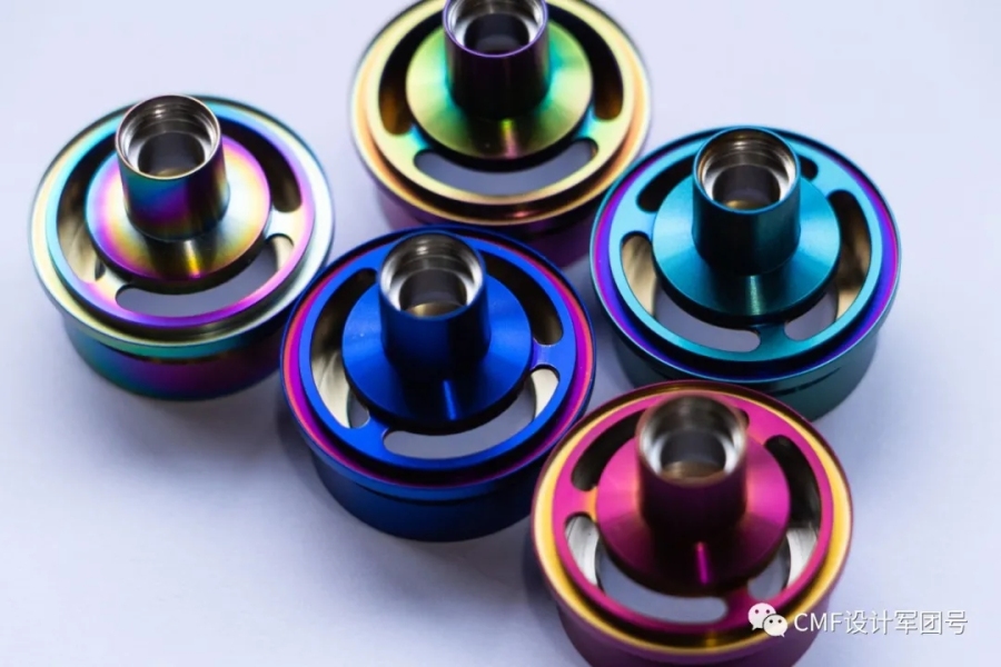 阳极氧化工艺是金属产品常用的色彩膜层工艺,特别是铝金属制品。阳极氧化是一种电化学反应,金属在特定的电解液中,外加电流在阳极上形成一层氧化膜的过程,工艺本身已经非常成熟,传统工艺不做过多介绍了, 下面会展示渐变阳极及图像纹理阳极效果。