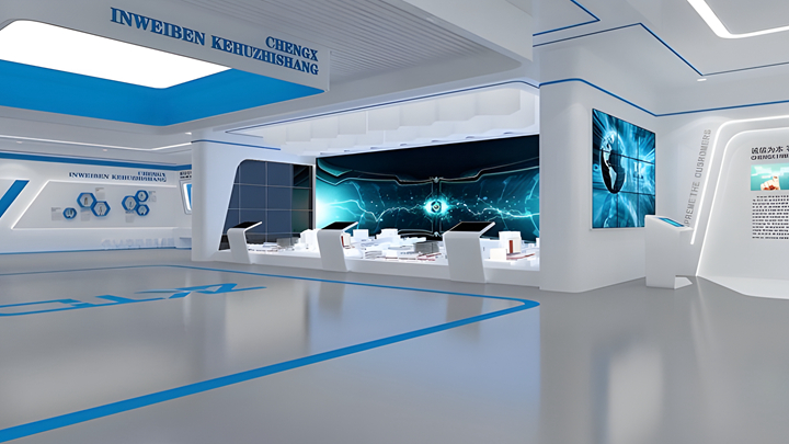 高科技展厅设计的色彩不能太单调,也不能太艳丽。单调会让展厅沉闷,华丽会让人眼花缭乱,不利于参观和浏览,所以高科技展厅的设计色彩要平衡。