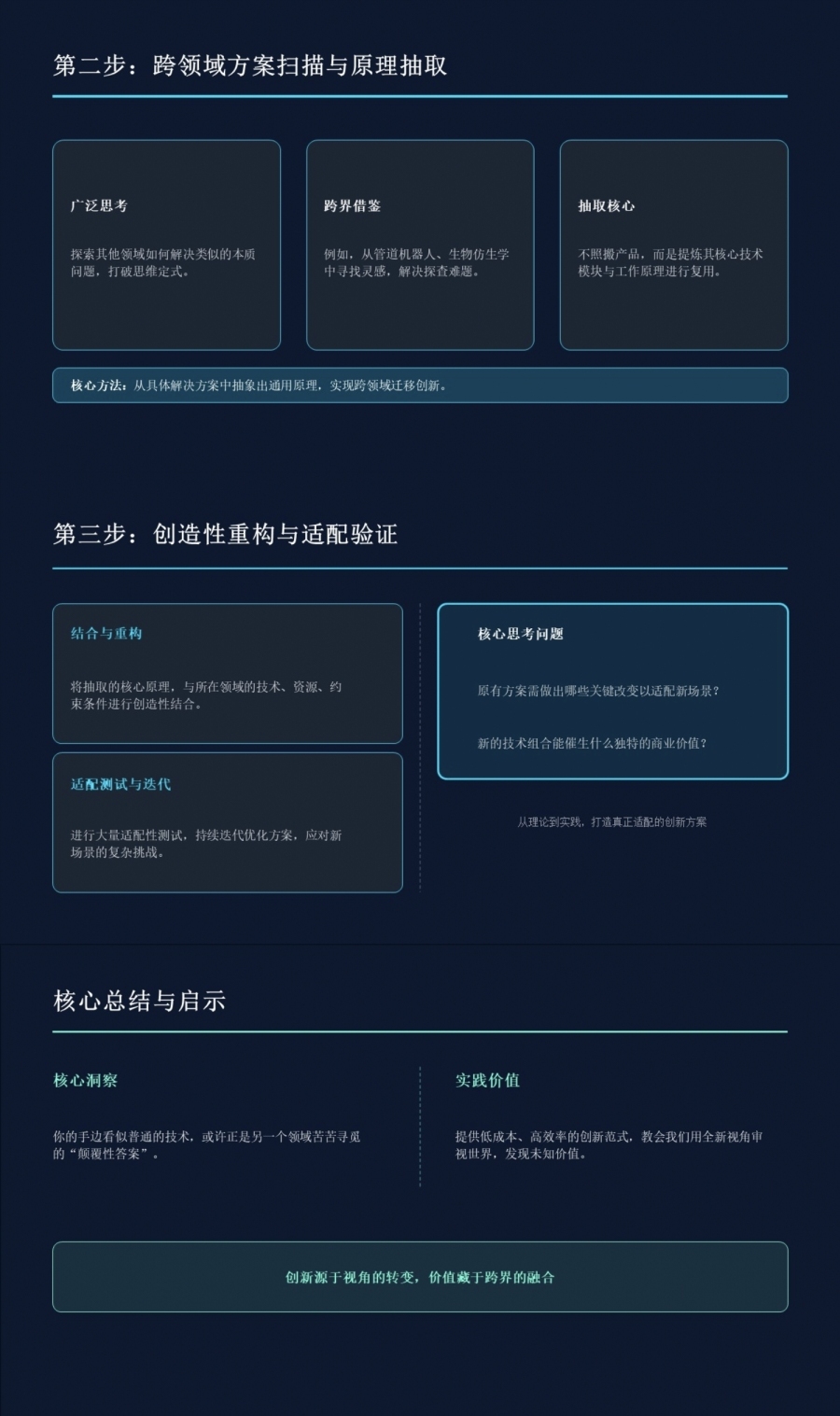 记住:世界早已为你备好了大部分答案,它们散落在不同领域的角落。你需要做的,不是从零开始发明,而是学会如何智慧地“发现”、“抽取”并“适配”。