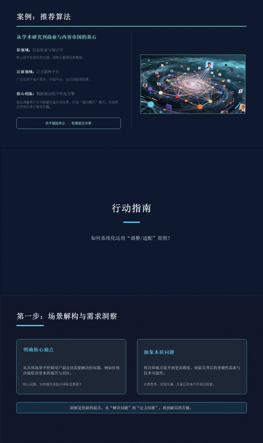 如果答案是肯定的,我想告诉你一个被无数顶尖创新者验证、却极少被公开谈论的秘密:真正持续产出伟大创意的人,很少进行“从零到一”的发明。他们的核心竞争力,是一种系统化的“迁移思维”——像最敏锐的侦探一样,在世界已有的解决方案中,寻找可被“跨界移植”的灵感,并通过巧妙的“调整与适配”,使其在新的土壤中焕发颠覆性的生机。