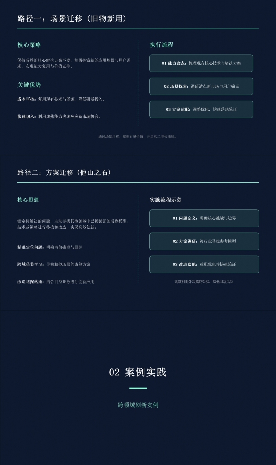 ——当你手中握着一个优秀的解决方案(一项技术、一个产品、一种模式),不要只盯着它最初的用途。问问自己:它的核心解决了什么本质问题?这个“解决能力”还能用在哪些完全不同的场景,满足哪些尚未被很好满足的需求?关键在“思旧”,保持核心不变,为它寻找新舞台。