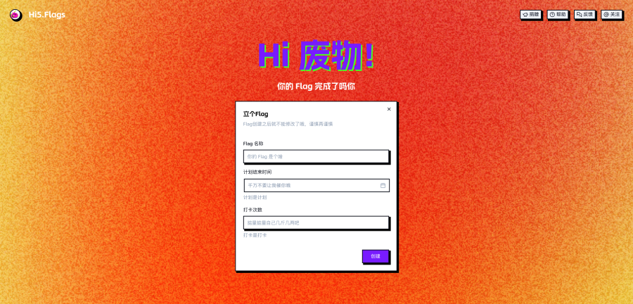 立Flag很简单,输入名称、计划结束时间和打卡字数就可以了。但记住,打卡次数不能超过天数哦。