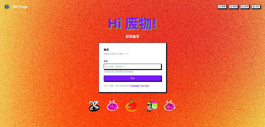 目前Hi5.Flag只支持邮箱登录,输入邮箱地址点击『登录』后,邮箱会收到登录链接,点击即可进入。