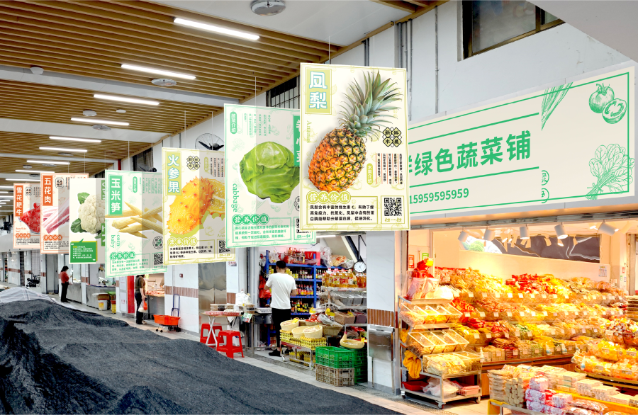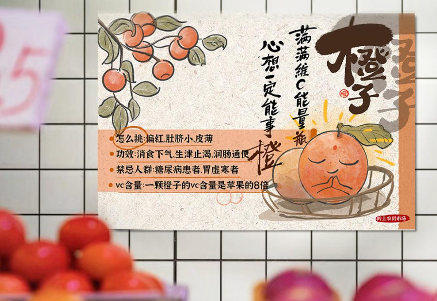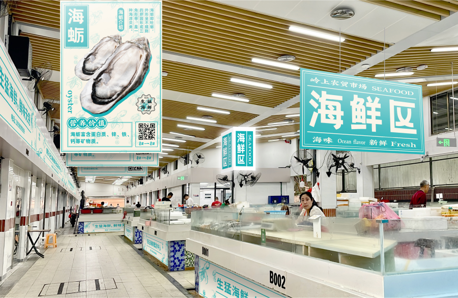 贞庵农贸市场氛围提升方案,用海报将各种食材拟人化,以幽默文案搭配有趣画面场景,活跃整个菜市场的氛围,使之更加具有趣味性,赋予菜市场生机与年轻态活力;风格上以水彩风格加上手写字体,与菜市场接地气的风格融合搭配,更具朴实性。同时搭配一些常识文字,比如如何挑选更新鲜的食材,食材的功效、做法、禁忌人群等,又具有一定的科普性。