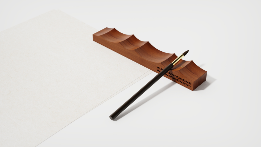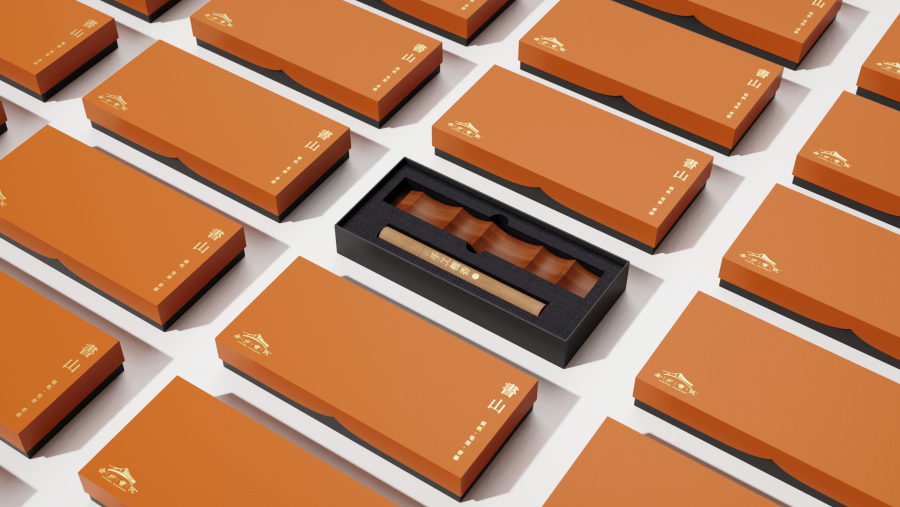 设计以文房用品镇纸为主要载体,同时衍生出香插、笔架功能,一物多用,减少物品闲置时间。材质选用实木,可根据实际需求选择不同颜色的木材制作。设计包装为天地盖礼盒,内部可搭配厦门产线香。