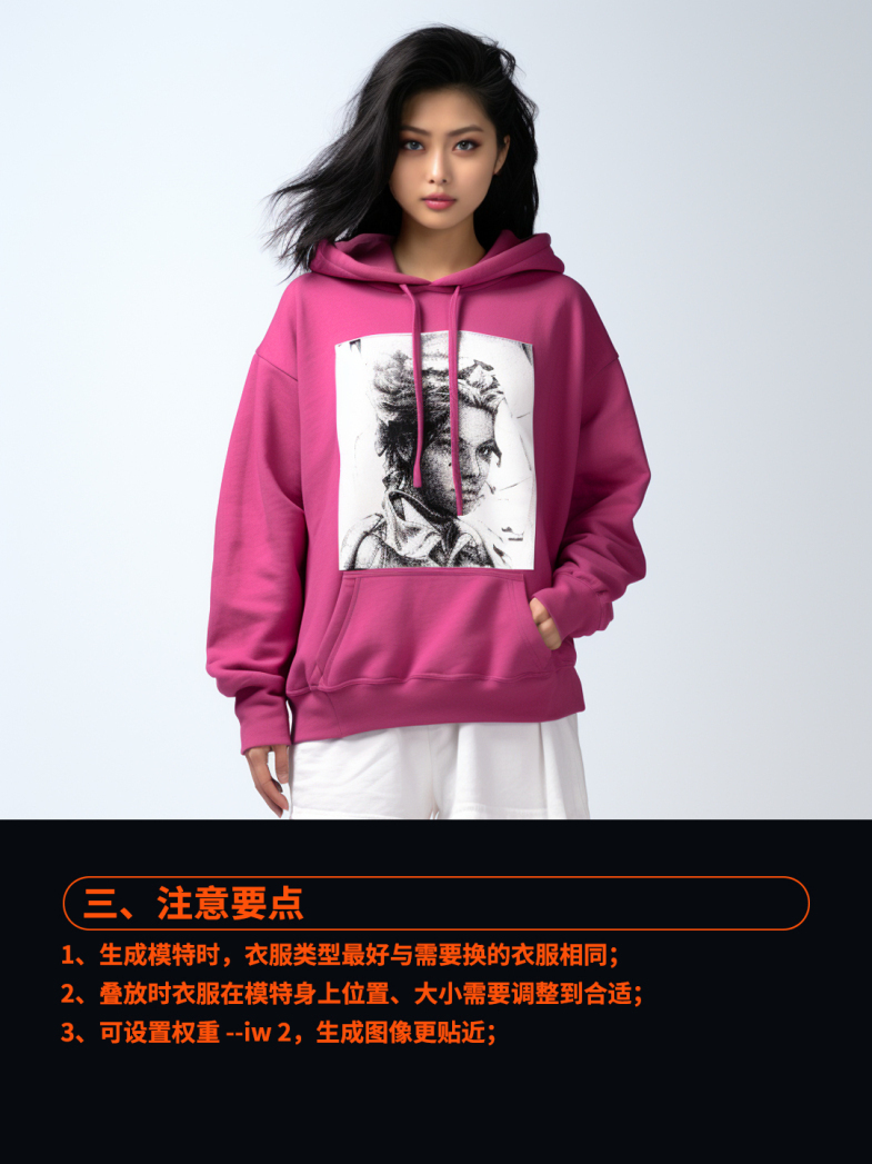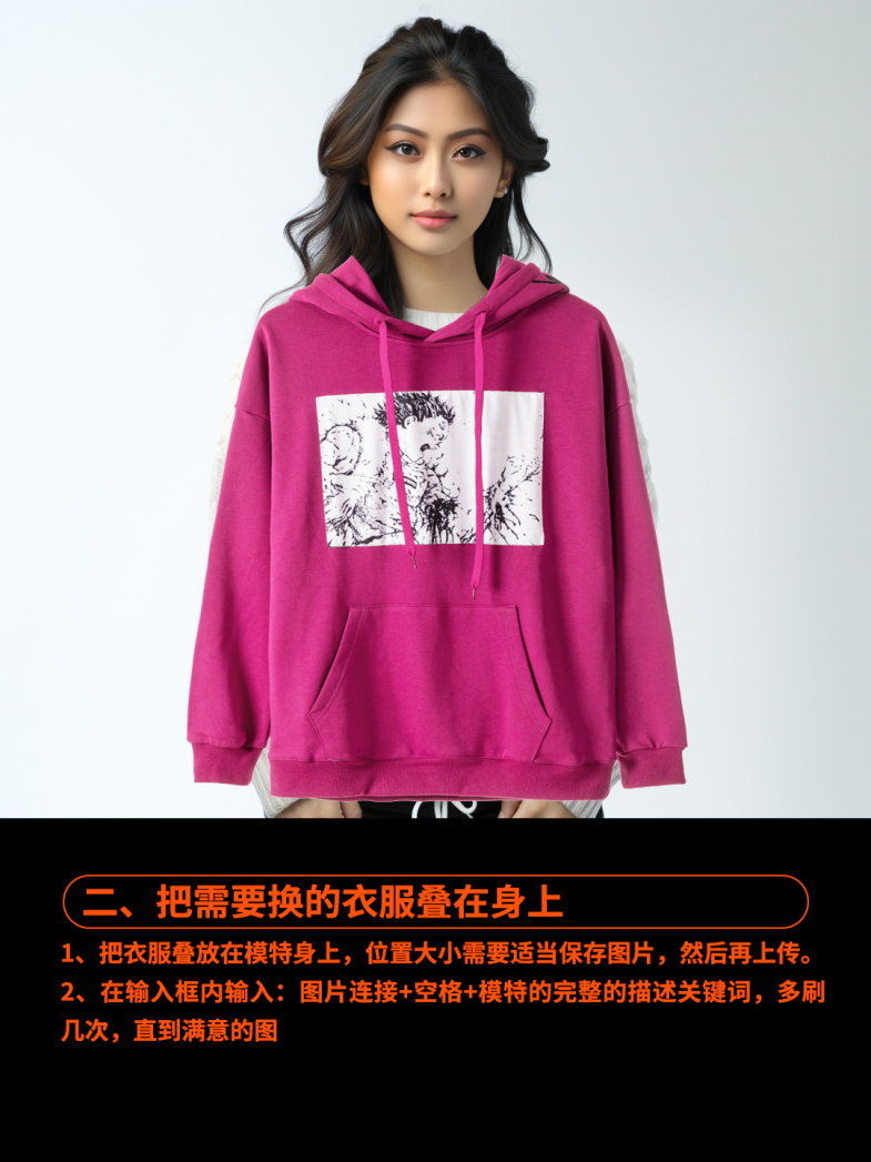 1、生成模特时,衣服类型最好与需要换的衣服款式、颜色相近或相同;