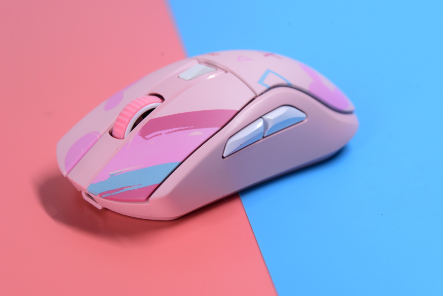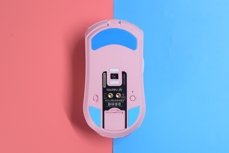 A950是一款左右对称的游戏鼠标,表面采用类肤质处理,而颜色方面选黑色会比其他版本的颜色更耐脏。粉红色版本的logo英文在右键下方(约等于隐藏了logo),整体外观非常的少女粉,图案又有点朋克,稳重起见还是选黑色好。