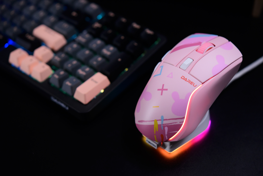 和EM901电擎版同款的磁吸充电座,底部还有按键切换RGB灯效。逛了一圈发现带充电座的鼠标居然差不多都得七八百,达尔优这299的价位属实在做性价比。