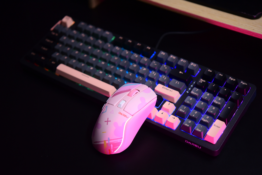 这款达尔优A950一共拥有三种配色方案,除了上图的粉红色版本以外,还有星空黑和机甲蓝。个人建议还是选黑色或者蓝色比较稳,粉色有点骚怕你拿不出手。