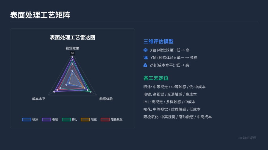 表面处理(Finishing)是在基材上进行的后期加工,它能彻底改变产品的视觉和触觉感受,是提升产品“溢价感”的核心。