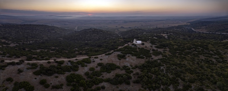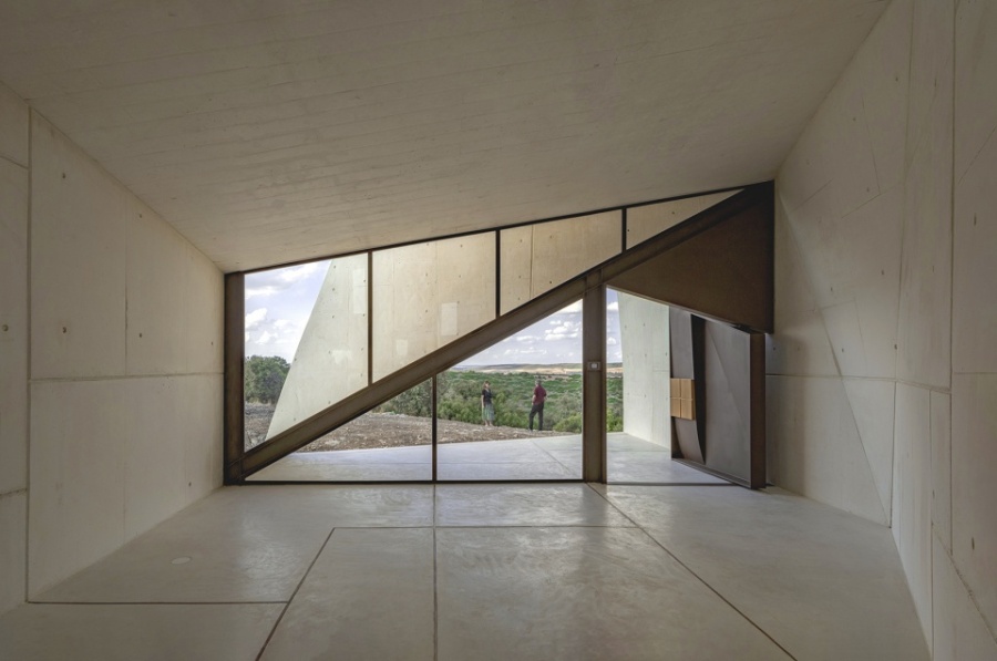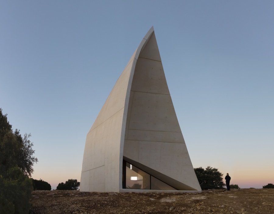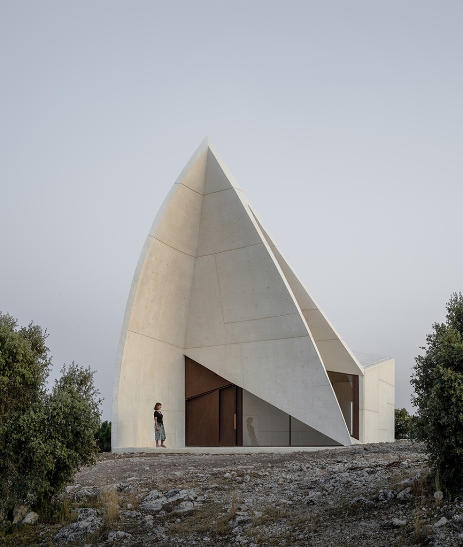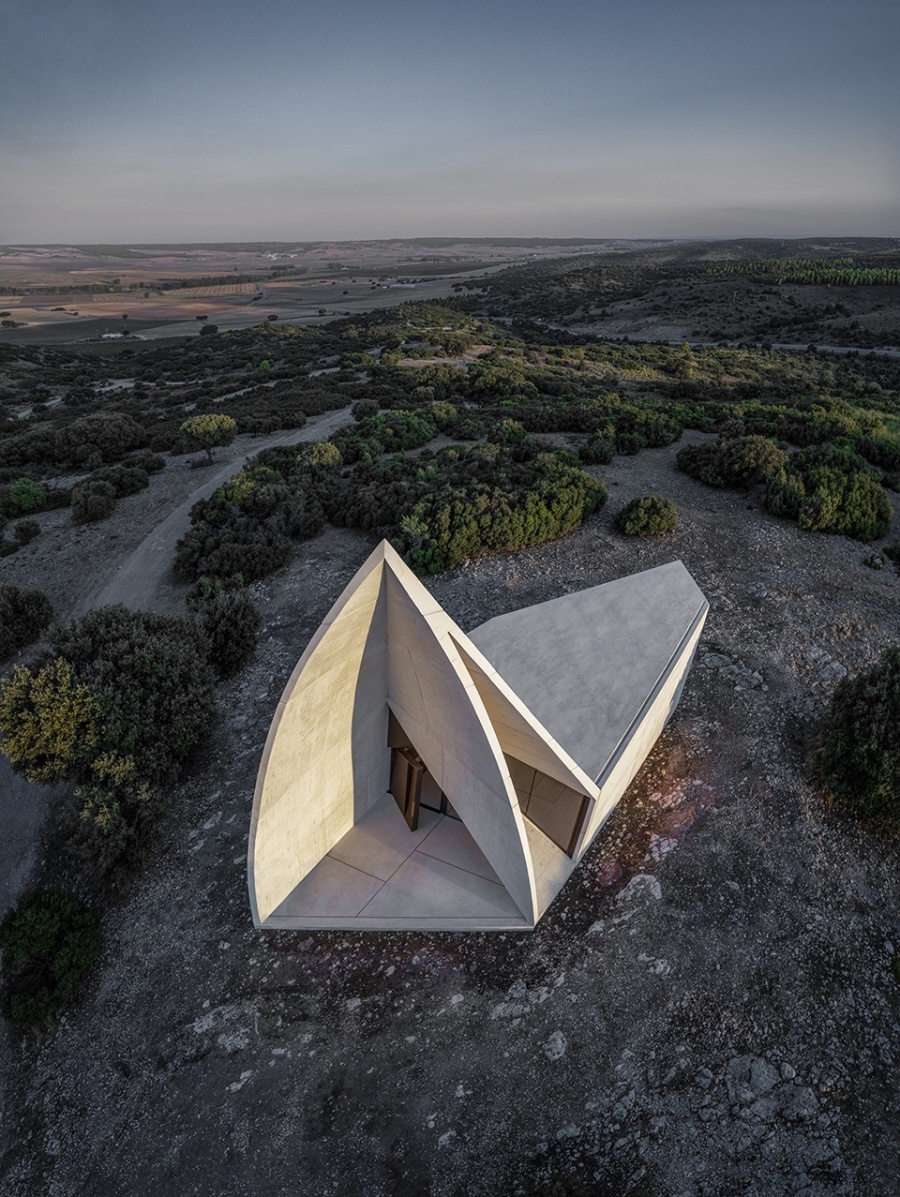 In hilly central Spain, in Cuenca, on a rural estate with centenary holm oaks and truffle cultivation, we designed a chapel and a house ensemble for the owning family. The chapel is developed from a single curved fold, conceptually and in its approach related to Chapel in Valleacerón. These folds needed to be built in reinforced concrete to ensure they would work in a single and correct fashion. Likewise, structure, shape, and space were developed from the same gesture. Light allows the visitor to appreciate the character of the space itself.