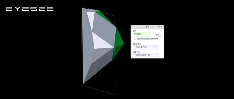 4.使用柔性建模的镜像工具,将刚刚切割的面镜像,最好选择目的曲面