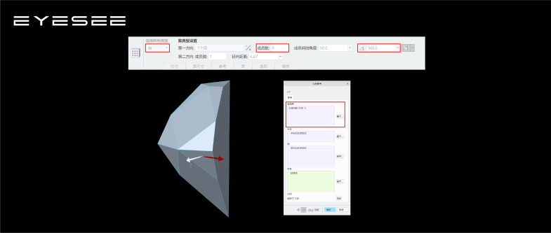 5.几何轴阵列实体曲面,注意不是阵列实体,如果阵列实体的话,就会出现多 个实体