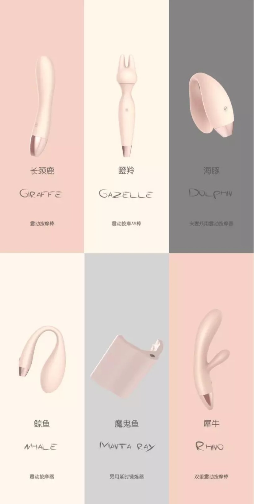 这系列产品除了有一两款能比较容易认出是情趣用品外,其他的都让人看不出来是做什么用的。这是故意而为之的,我并不喜欢把这玩意设计得太过具象。我希望我们的产品能取悦你的同时,还不至于让你看着尴尬(即使不小心暴露在朋友面前也不会造成尴尬)。例如: