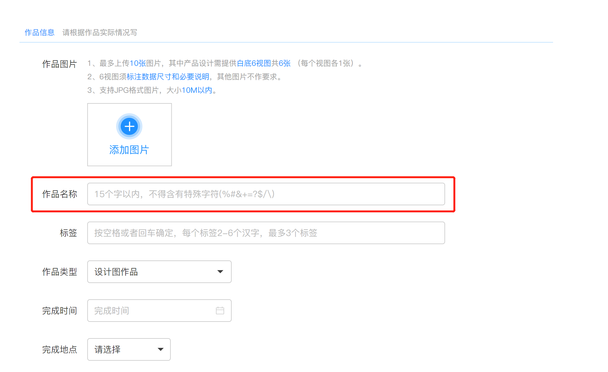 3、填写作品名称