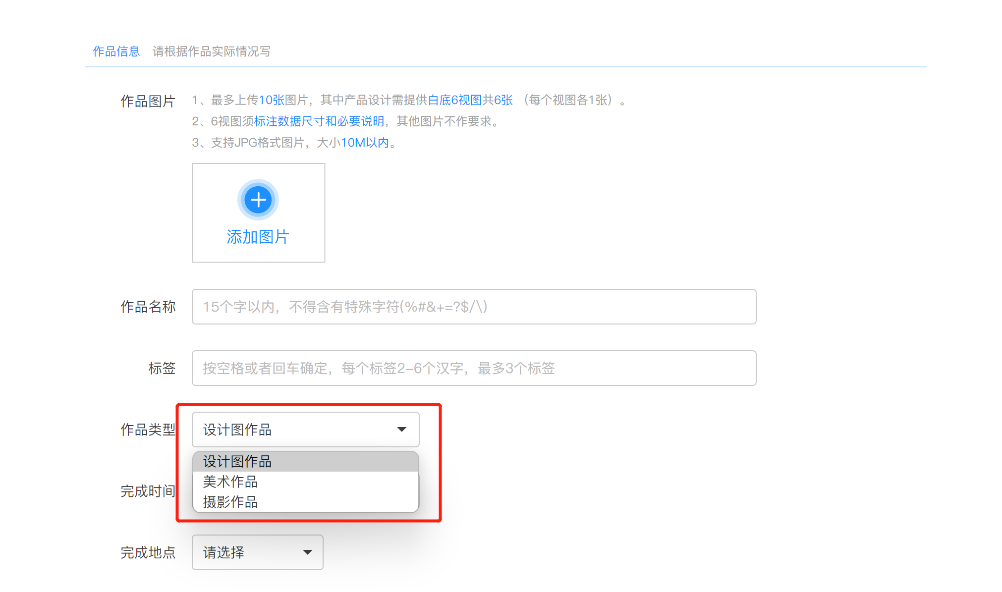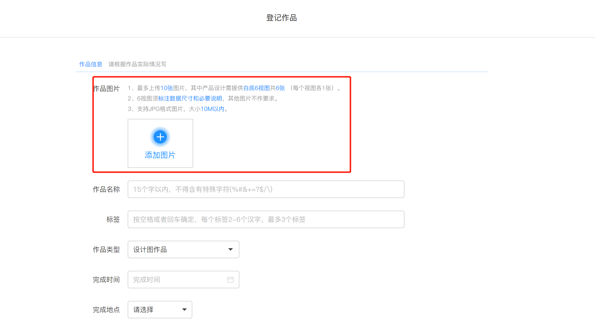 作品描述中写明的信息需要与其他填写的信息一致。