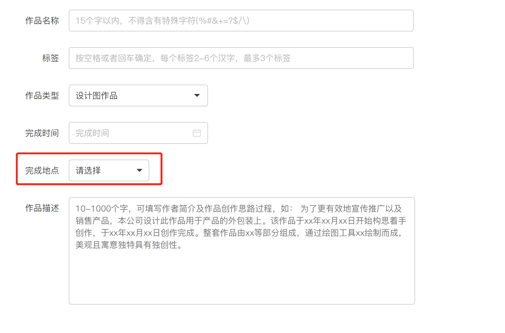 完成地点应如实填写作品完成的省市。