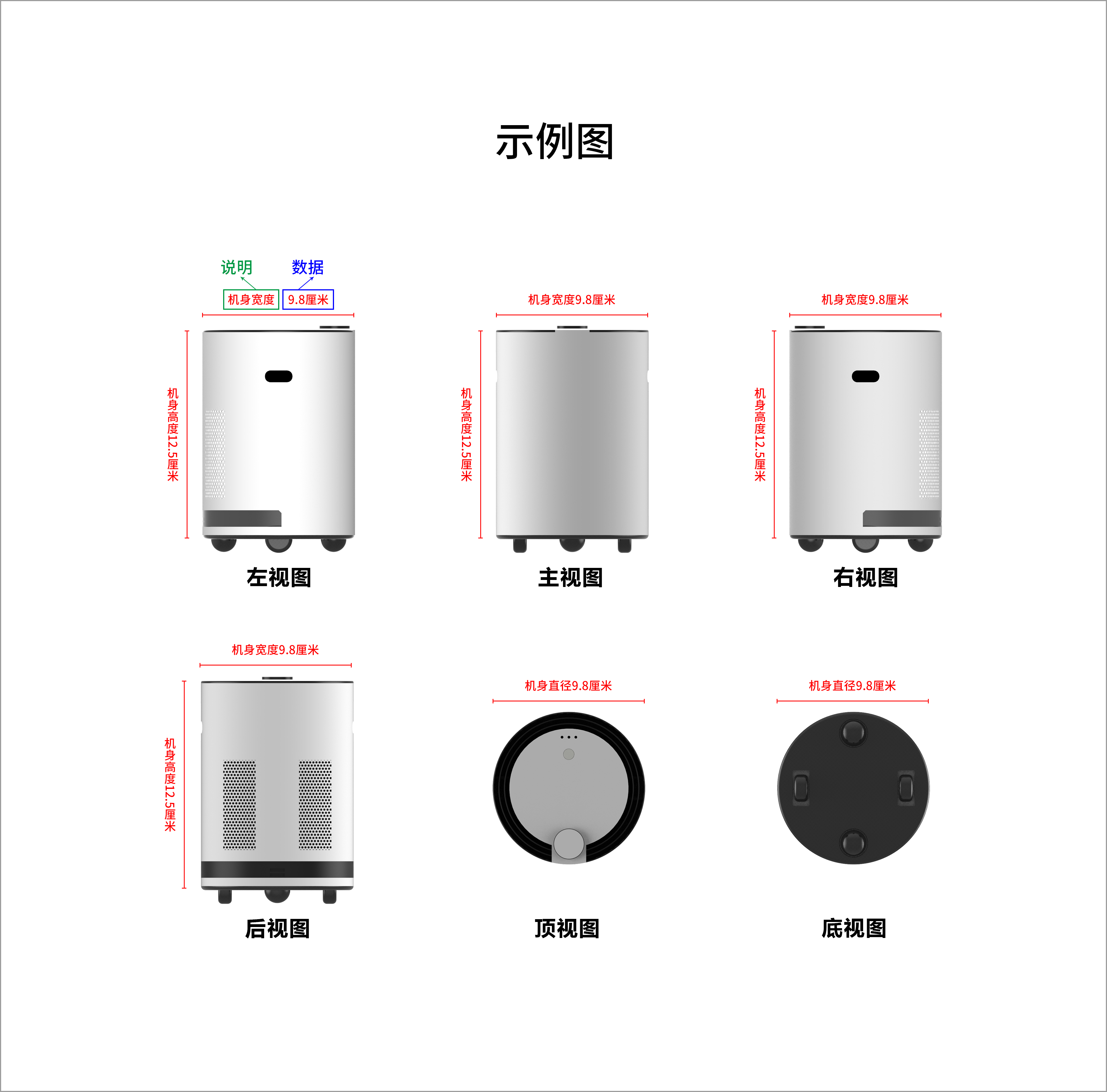 6视图须标注数据尺寸和必要说明(可以参考下列示例图),其他图片不作要求。